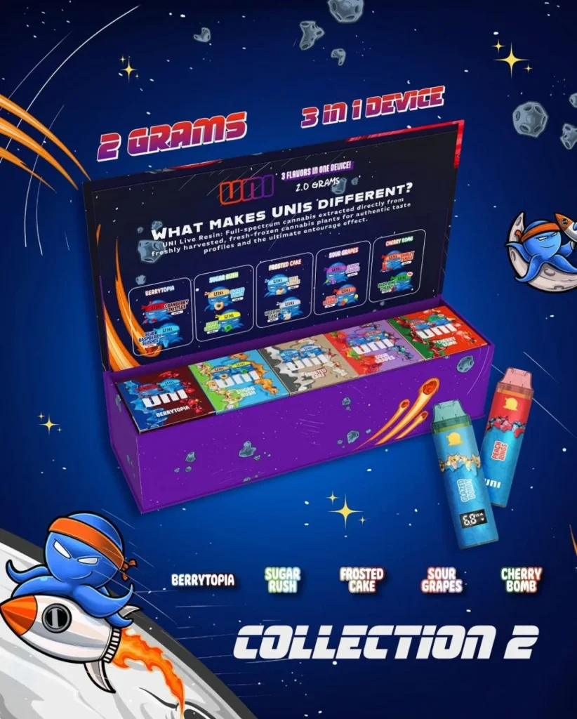 Uni’s live resins are made from freshly harvested, flash-frozen cannabis plants. This is different from standard distillates. This process keeps the full terpene and cannabinoid profile. As a result, it offers a truly authentic taste and unique flavor.